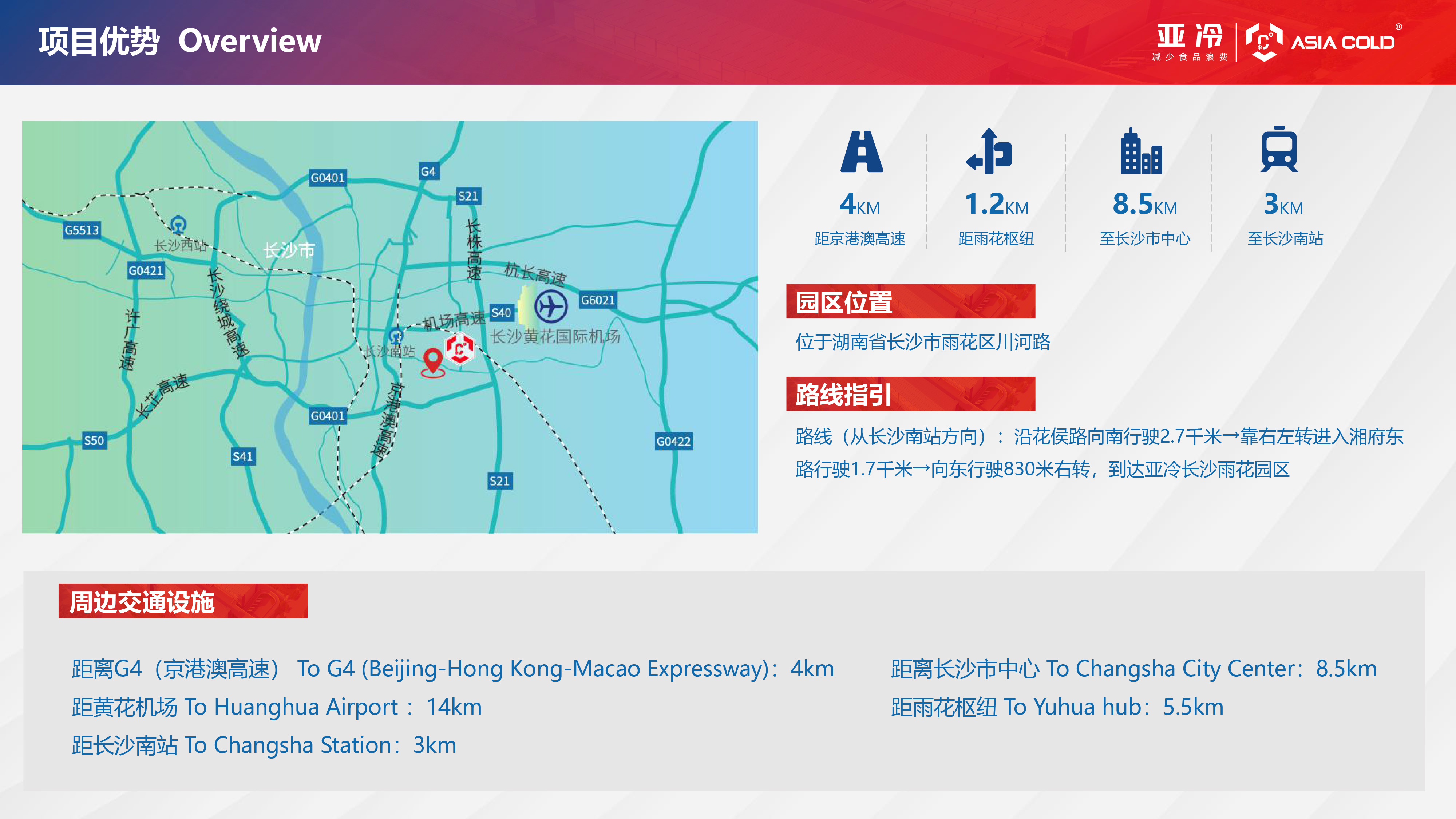 交通優勢:緊鄰連通多條交通樞紐干道,距離京港澳高速4KM, 距離長沙黃花機場14公里,距離長沙南站3公里處于交通樞紐便于城市配送。