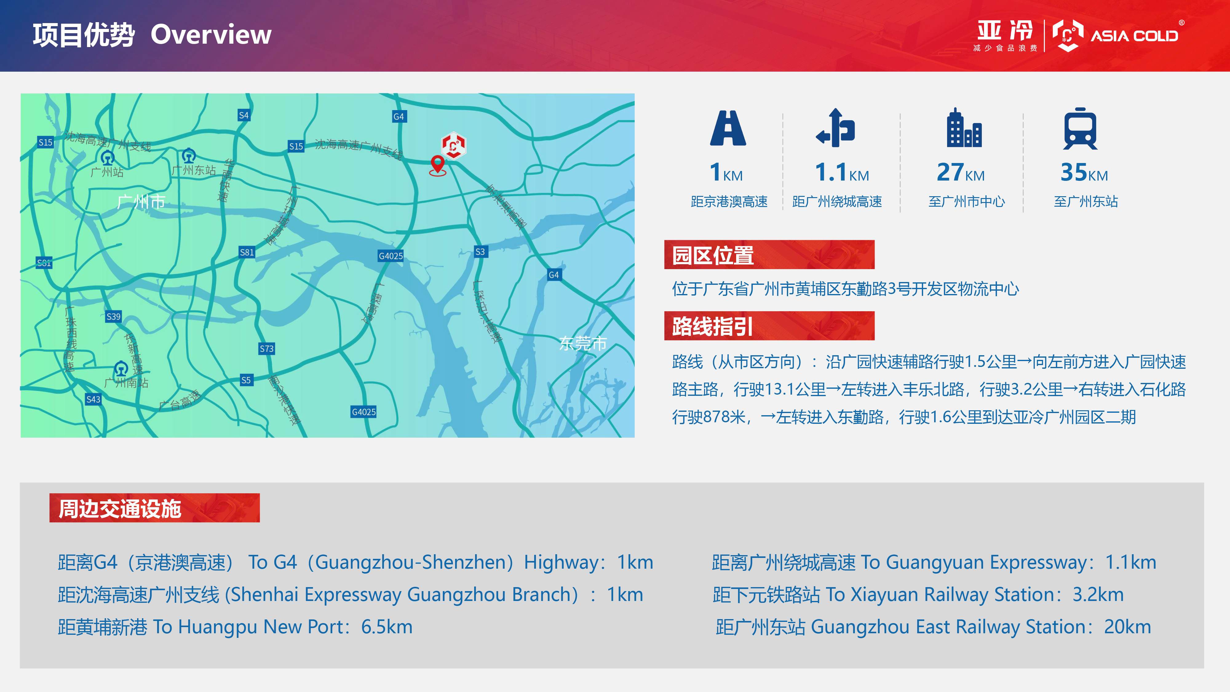 交通優勢:距離京港澳高速1.1KM、距離廣澳高速路 1KM、距離廣園快速 3.7KM、距天河區25分鐘車程,90分鐘車程內可達珠三角各大城市。
