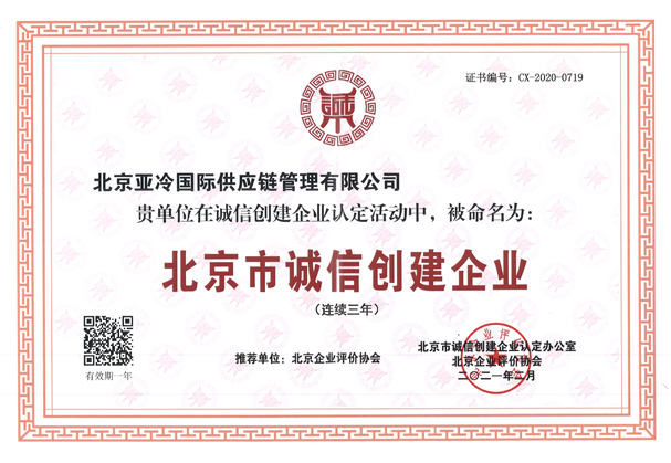 “北京市誠(chéng)信創(chuàng)建企業(yè)”2021年