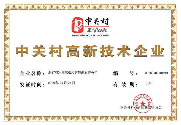 亞冷中關(guān)村 高新技術(shù)企業(yè)
