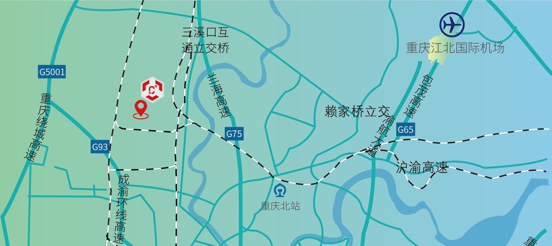 交通優勢——距成渝高速3KM,至團結村鐵路集裝箱站2KM,距重慶市區15KM,處于交通樞紐位置便于周轉配送